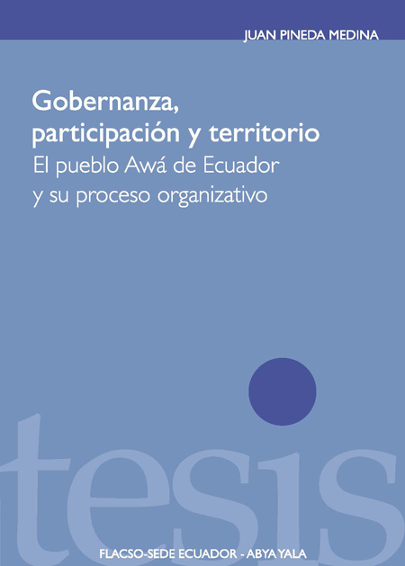 Pineda Medina, Juan. 2011. Gobernanza, participación y territorio. El pueblo Awá de Ecuador y su proceso organizativo. Quito: FLACSO Ecuador / Abya-Yala.