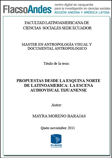 Moreno Barajas, Mayra. 2011. Propuestas desde la esquina norte de Latinoamérica: la escena audiovisual tijuanense. Tesis de maestría, Flacso sede Ecuador.