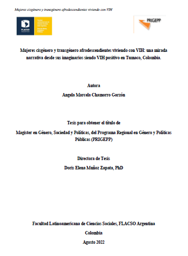 Chamorro Garzón, Angela Marcela (2022). Mujeres cisgénero y transgénero afrodescendientes viviendo con VIH : una mirada narrativa desde sus imaginarios siendo VIH positivo en Tumaco, Colombia. Tesis de Maestría. FLACSO. Sede Académica Argentina, Buenos Aires.