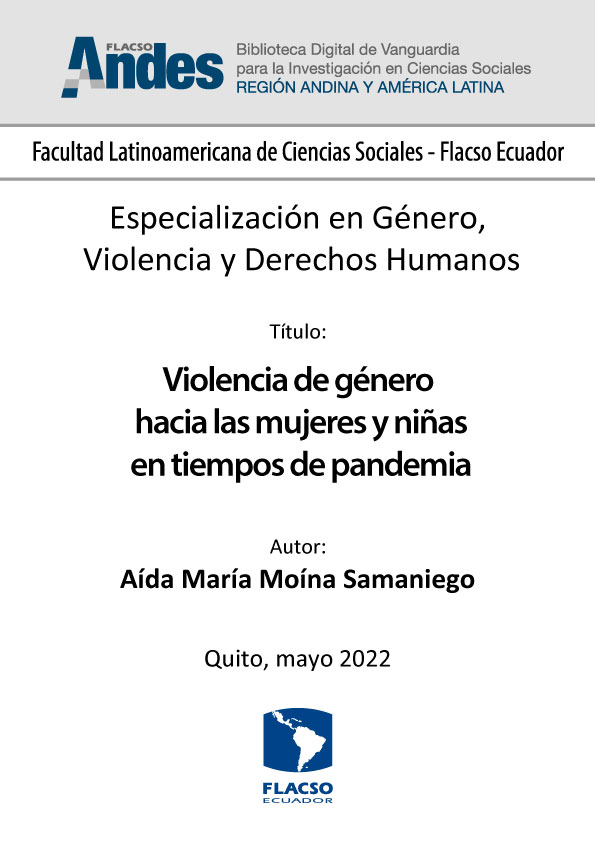 Moína Samaniego, Aída María. 2022. Violencia de género hacia las mujeres y niñas en tiempos de pandemia. Tesina de especialización, Flacso Ecuador.