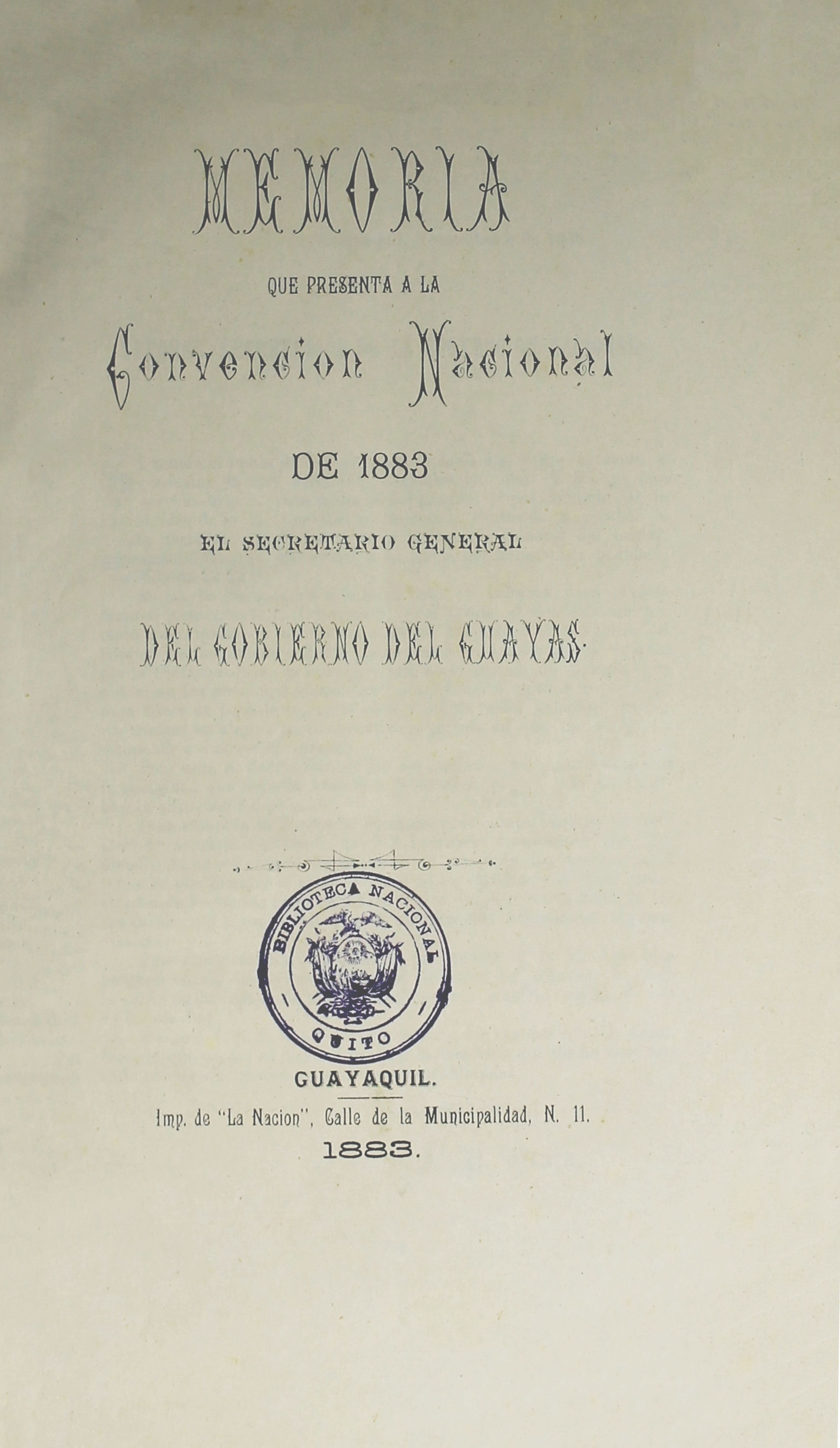 Memoria que presenta a la Convención Nacional de 1883 el Secretario General del Gobierno del Guayas. Guayaquil, Ecuador: Imprenta de La Nación.