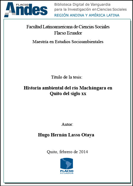 Lasso Otaya, Hugo Hernán. 2014. Historia ambiental del río Machángara en Quito del siglo XX. Tesis de maestría, Flacso Ecuador.