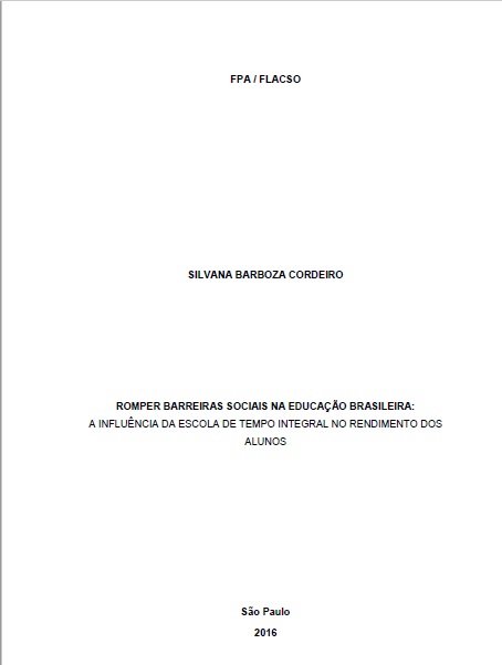 Barboza Cordeiro, Silvana. 2016. Romper barreiras sociais na educação brasileira: a influência da escola de tempo integral no rendimento dos alunos. Tesis de maestría, Flacso Brasil.