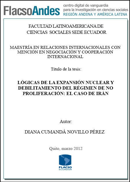 Novillo, D. C. (2012). Lógicas de la expansión nuclear y debilitamiento del régimen internacional de no proliferación : el caso de Irán (Tesis de Maestría en Relaciones Internacionales con mención en Negociación y Cooperación Internacional). FLACSO Sede Ecuador, Quito.