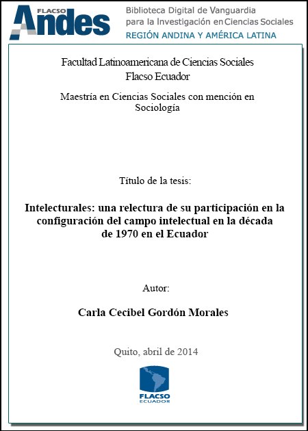 Gordón Morales, Carla Cecibel. 2014. Intelectuales: una relectura de su participación en la configuración del campo intelectual en la década de 1970 en el Ecuador. Tesis de maestría, Flacso Ecuador.