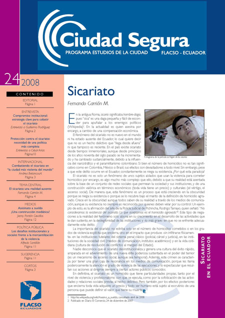 Ciudad segura. FLACSO sede Ecuador. Programa de Estudios de la Ciudad. Sicariato en el ecuador, Quito: FLACSO, (no. 24, diciembre 2007): 12 p.