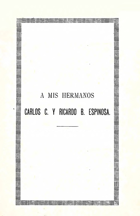 A mis hermanos Carlos C. y Ricardo B. Espinosa (Apuntes biográficos del Dr. Nicolás Espinosa Rivadeneira).