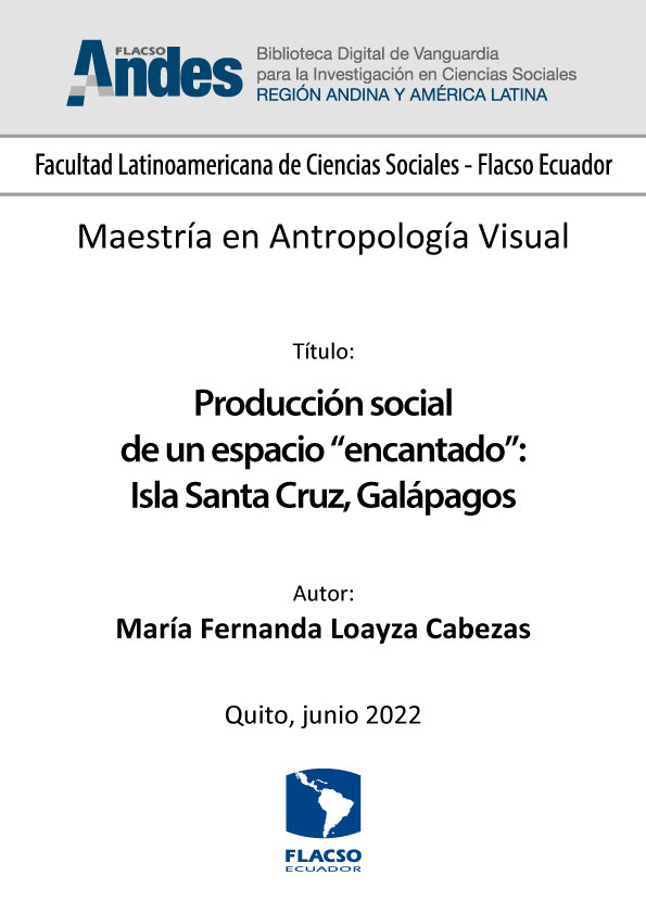 Loayza Cabezas, María Fernanda. 2022. Producción social de un espacio “encantado”: Isla Santa Cruz, Galápagos. Tesis de maestría, Flacso Ecuador.