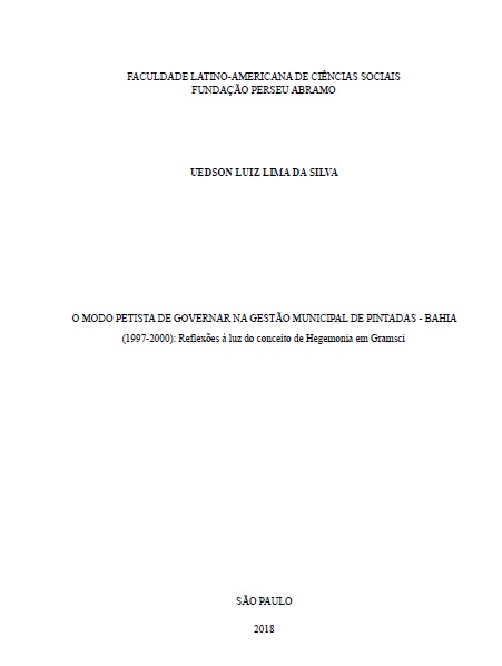 Lima da Silva, Uedson Luiz. 2018. O modo petista de governar na gestão municipal de Pintadas - Bahia (1997 - 2000): reflexões à luz do conceito de hegemonia em Gramsci. Tesis de maestría, Flacso Brasil.