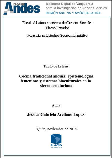 Arellano López, Jessica Gabriela. 2014. Cocina tradicional andina: epistemologías femeninas y sistemas bioculturales en la sierra ecuatoriana. Tesis de maestría, Flacso Ecuador.