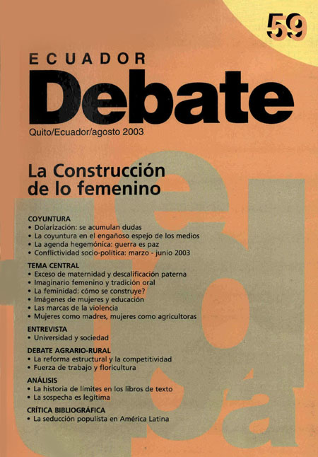 Ecuador Debate. La construcción de lo femenino. Centro Andino de Acción Popular. Quito: CAAP, (no. 59, agosto 2003): 195 p. ISSN: 1012-1498