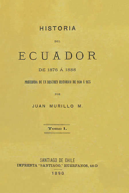 Murillo, Juan. 1890. Historia del Ecuador de 1876 á 1888 precedida de un resúmen histórica de 1830 á 1875. Tomo I. Santiago de Chile, Chile : Imprenta "Santiago," huérfanos, 46-D.