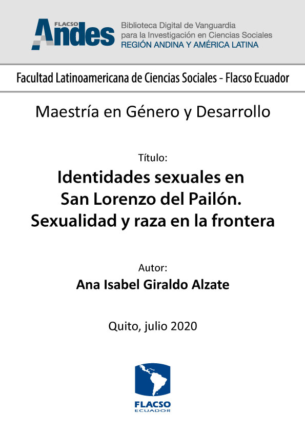 Giraldo Alzate, Ana Isabel. 2020. Identidades sexuales en San Lorenzo del Pailón. Sexualidad y raza en la frontera. Tesis de maestría, Flacso Ecuador.