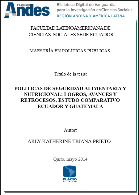Triana Prieto, Arly Katherine. 2014. Políticas de seguridad alimentaria y nutricional: Logros, avances y retrocesos. Estudio comparativo Ecuador y Guatemala. Tesis de maestría, FLACSO Sede Ecuador.