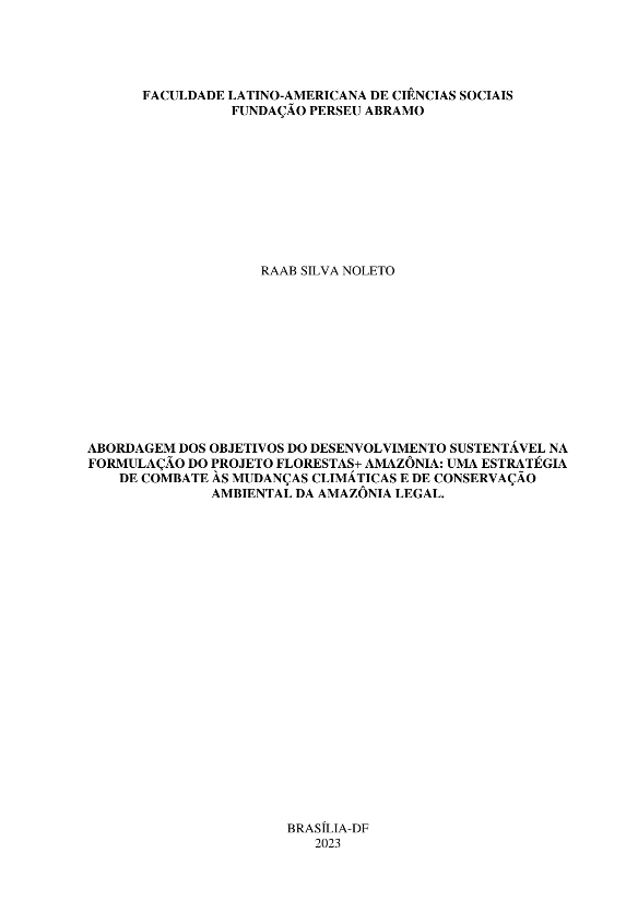 Silva Noleto, Raab. 2023. Abordagem dos Objetivos do Desenvolvimento Sustentável na formulação do Projeto Florestas +Amazônia: Uma estratégia de Combate às mudanças climáticas e de Conservação Ambiental da Amazônia Legal. Tesis de maestría, Flacso Brasil.