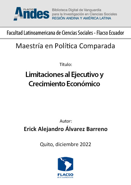 Álvarez Barreno, Erick Alejandro. 2022. Limitaciones al Ejecutivo y Crecimiento Económico. Tesis de maestría, Flacso Ecuador.