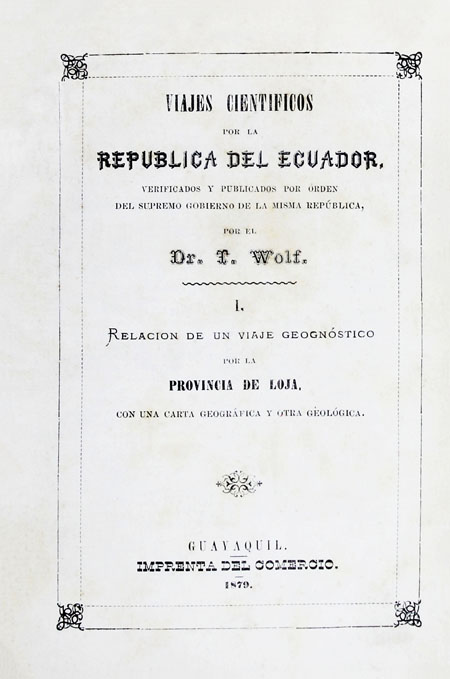 Wolf, Teodor. 1879. Viajes científicos por la República del Ecuador, verificados y publicados por orden del supremo Gobierno de la misma República. Guayaquil, Ecuador : Imprenta del Comercio.