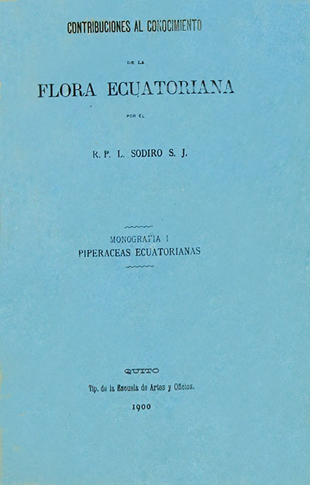 Sodiro, Luis. 1900. Contribuciones al conocimiento de la flora ecuatoriana : monografía I. [Piperaceas ecuatorianas]. Quito : Tip. de la Escuela de Artes y Oficios