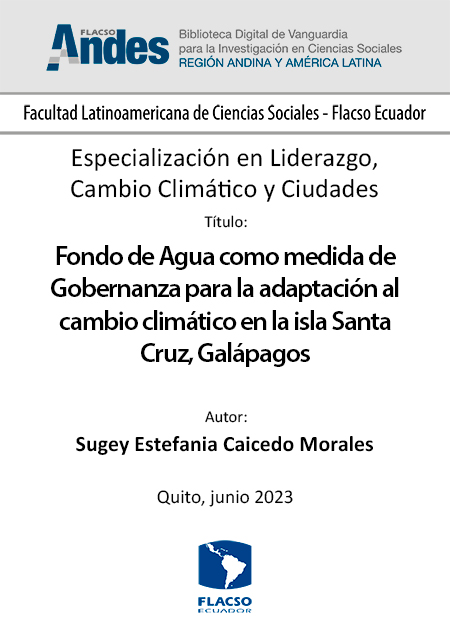 Caicedo Morales, Sugey Estefania. 2023. Fondo de Agua como medida de Gobernanza para la adaptación al cambio climático en la isla Santa Cruz, Galápagos. Tesina de especialización, Flacso Ecuador.