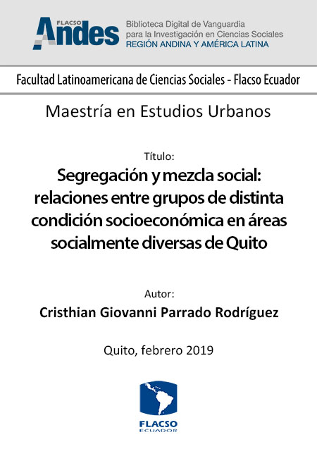 Parrado Rodríguez, Cristhian Giovanni. 2019. Segregación y mezcla social: relaciones entre grupos de distinta condición socioeconómica en áreas socialmente diversas de Quito. Tesis de maestría, Flacso Ecuador.