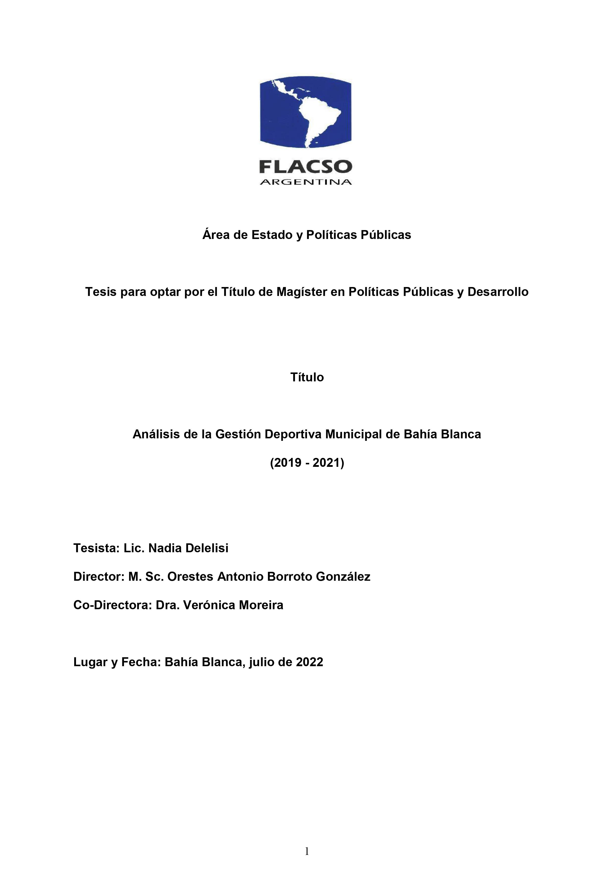 Delelisi, Nadia (2022). Análisis de la gestión deportiva municipal de Bahía Blanca: 2019-2021. Tesis de Maestría. FLACSO. Sede Académica Argentina, Buenos Aires.