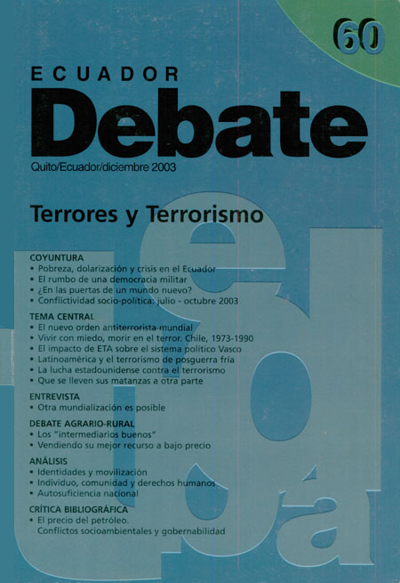 Ecuador Debate. Terrores y terrorismo. Centro Andino de Acción Popular. Quito: CAAP, (no. 60, diciembre 2003): 258 p. ISSN: 1012-1498