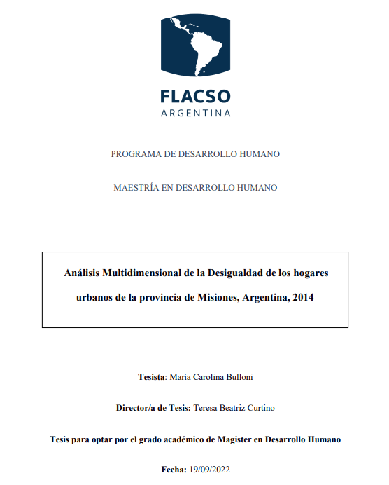Bulloni, María Carolina (2022). Análisis multidimensional de la desigualdad de los hogares urbanos de la provincia de Misiones, Argentina, 2014. Tesis de Maestría. FLACSO. Sede Académica Argentina, Buenos Aires.