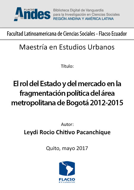Chitivo Pacanchique, Leydi Rocio. 2017. El rol del Estado y del mercado en la fragmentación política del área metropolitana de Bogotá 2012 - 2015. Tesis de maestría, Flacso Ecuador.