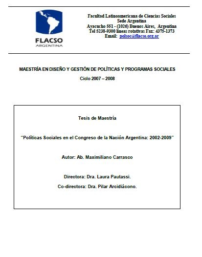 Carrasco, Maximiliano (2012). Políticas sociales en el Congreso de la Nación Argentina : 2002 - 2009. Tesis de Maestría. FLACSO. Sede Académica Argentina, Buenos Aires.