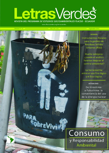 Letras Verdes. Consumo y responsabilidad ambiental. FLACSO Sede Ecuador. Programa de Estudios Socioambientales. Quito: FLACSO, (no. 10, septiembre - diciembre 2011): 66 p. ISSN: 1390-6631