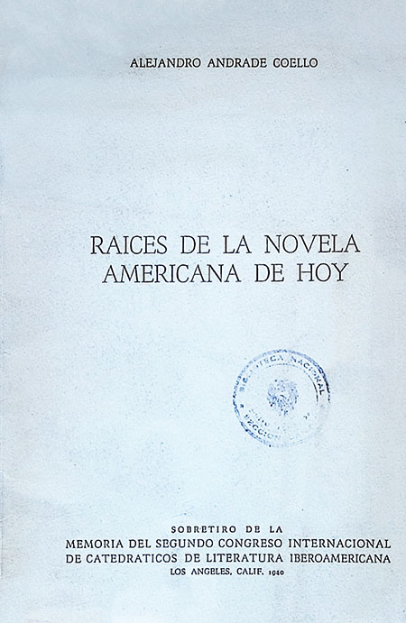 Andrade Coello, Alejandro. 1940. Raíces de la novela americana de hoy. Quito, Ecuador : [sn]