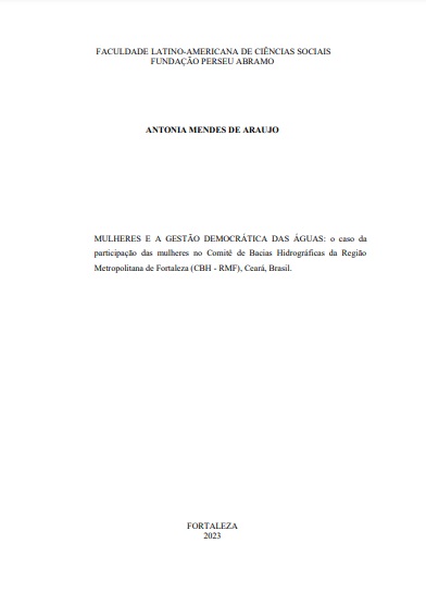 Mendes de Araujo, Antonia. 2023. MULHERES E A GESTÃO DEMOCRÁTICA DAS ÁGUAS: O caso da participação das mulheres no Comitê de Bacias Hidrográficas da Região Metropolitana de Fortaleza (CBH - RMF), Ceará, Brasil. Tesis de maestría, Flacso Brasil.