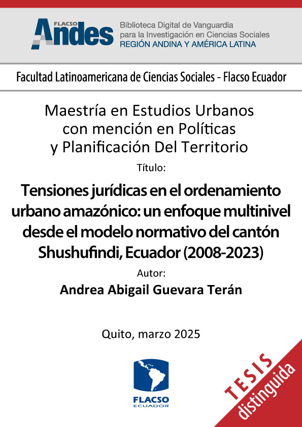 Guevara Terán, Andrea Abigail. 2025. Tensiones jurídicas en el ordenamiento urbano amazónico: un enfoque multinivel desde el modelo normativo del cantón Shushufindi, Ecuador (2008-2023). Tesis de maestría, Flacso Ecuador.