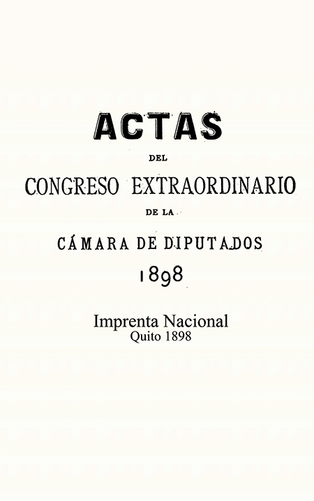 1898. [ Actas del Congreso Extraordinario de la Cámara de Diputados 1898 ]. [ Quito, Ecuador ] : [ Editorial sin identificar ].