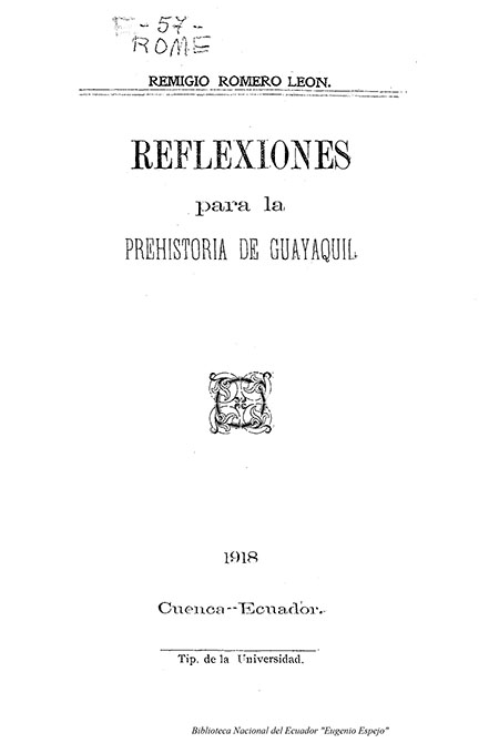 Romero León, Remigio. 1918. Reflexiones para la Prehistoria de Guayaquil. Cuenca : Tipografía de la Universidad.