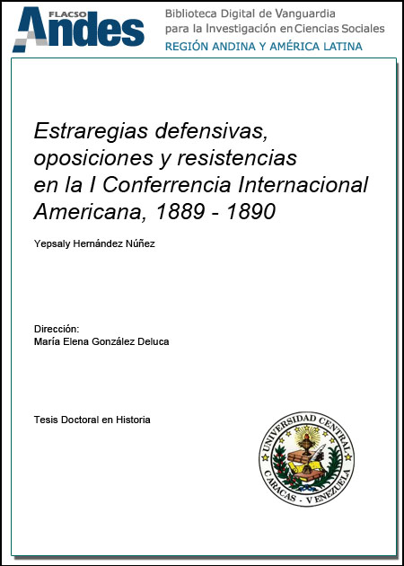 Hernández Núñez, Yepsaly. 2012. Estrategias defensivas, oposiciones y resistencias en la I Conferencia Internacional Americana, 1889 - 1890. Tesis de doctorado, Universidad Central.
