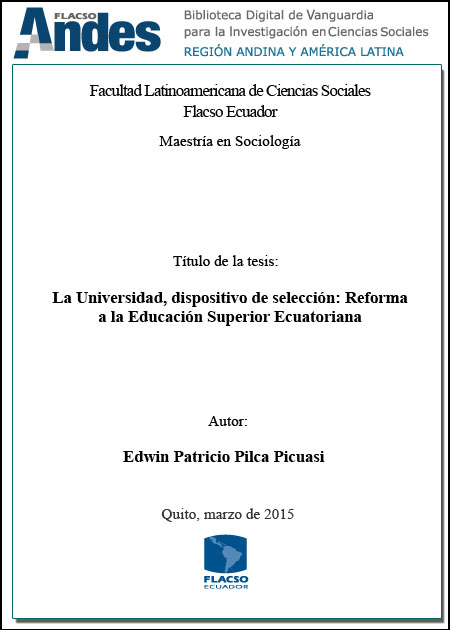 Pilca Picuasi, Edwin Patricio. 2015. La Universidad, dispositivo de selección: reforma a la educación superior ecuatoriana. Tesis de maestría, Flacso Ecuador.