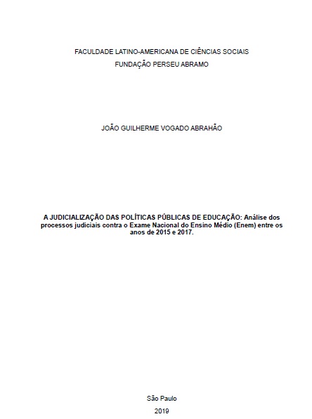 Vogado Abrahão, João Guilherme. 2019. A judicialização das políticas públicas de educação: análise dos processos judiciais contra o Exame Nacional do Ensino Médio (Enem) entre os anos de 2015 e 2017. Tesis de maestría, Flacso Brasil.