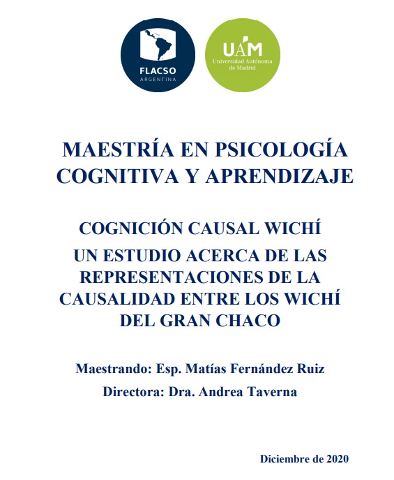 Fernández Ruiz, Matías (2020). Cognición causal wichí : un estudio acerca de las representaciones de la causalidad entre los wichí del Gran Chaco. Tesis de Maestría. FLACSO. Sede Académica Argentina, Buenos Aires.