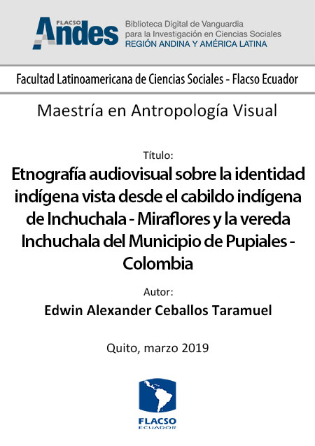 Ceballos Taramuel, Edwin Alexander. 2019. Etnografía audiovisual sobre la identidad indígena vista desde el cabildo indígena de Inchuchala-Miraflores y la vereda Inchuchala del Municipio de Pupiales – Colombia. Tesis de maestría, Flacso Ecuador.
