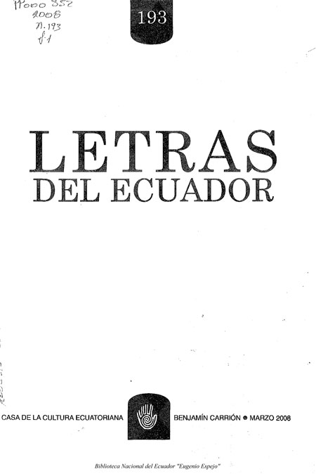 Casa de la Cultura Ecuatoriana. 2008. Letras del Ecuador, 193.