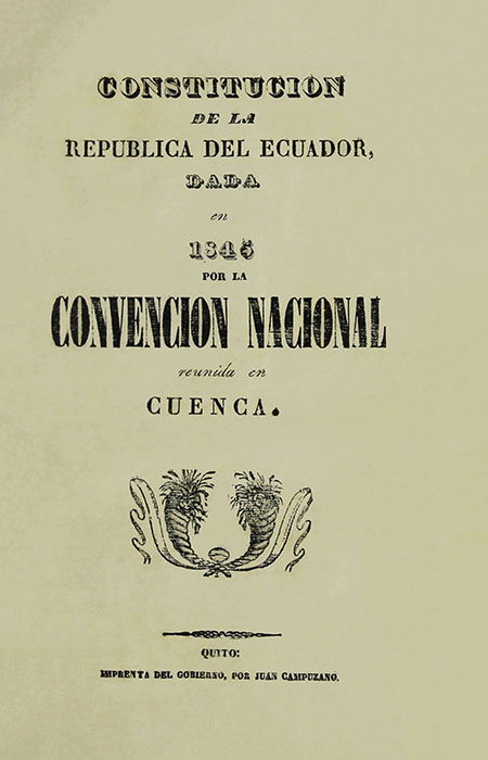 Constitución de la República del Ecuador dada en 1846 por la Convención Nacional reunida en Cuenca (Folleto).