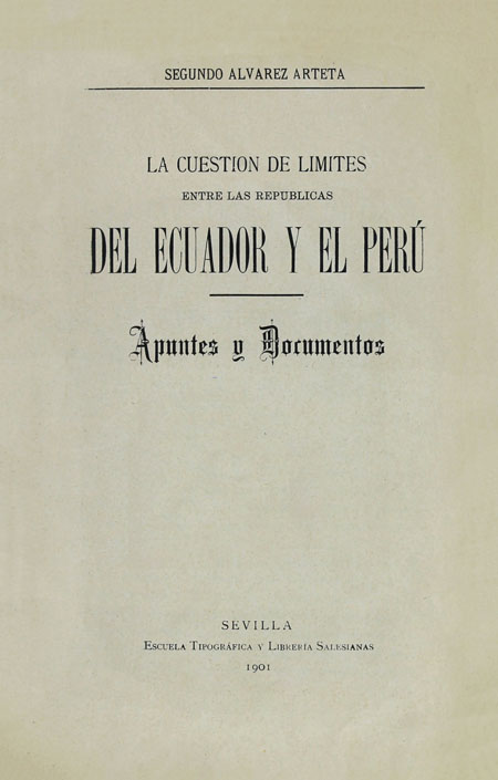 Alvarez Arteta, Segundo. 1901. La cuestión de límites entre las repúblicas del Ecuador y el Perú : apuntes y documentos. Sevilla, España : Escuela Tipográfica y Librería Salesianas.