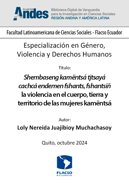 Juajibioy Muchachasoy, Loly Nereida. 2024. Shembaseng kamëntsá tjtsayá cachcá endemen fshants, fshantsiñ la violencia en el cuerpo, tierra y territorio de las mujeres kamëntsá. Tesina de especialización, Flacso Ecuador.