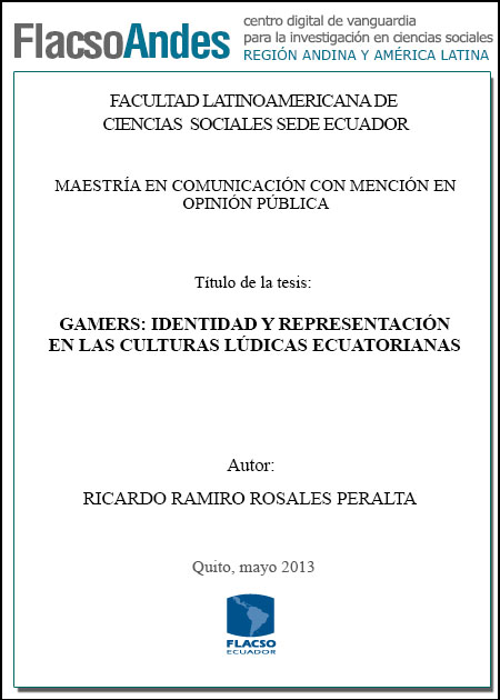 Rosales Peralta, Ricardo Ramiro. 2013. Gamers: identidad y representación en las culturas lúdicas ecuatorianas. Tesis de maestría, Flacso Ecuador.