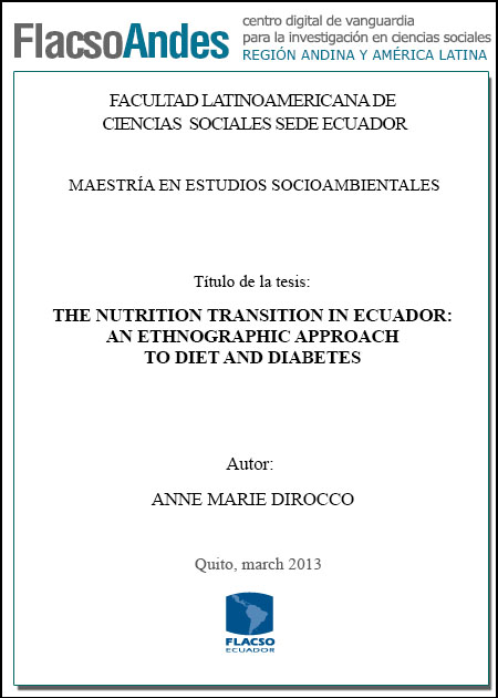 Dirocco, Anne Marie. 2013. The nutrition transition in Ecuador: an ethnographic approach to diet and diabetes. Tesis de maestría, Flacso Ecuador.