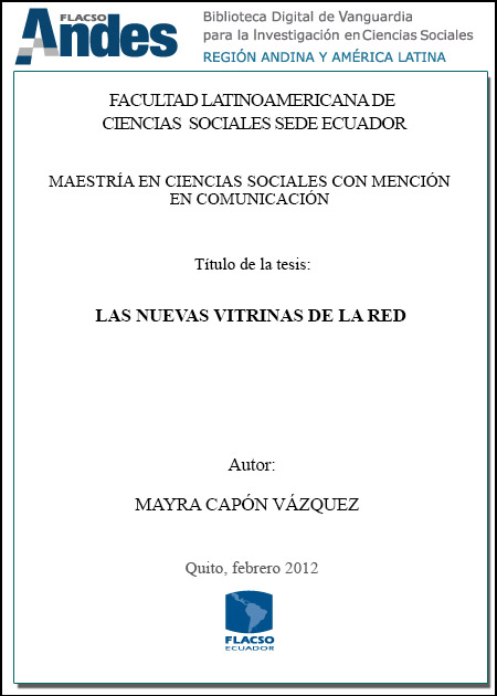 Capón, M. (2012). Las nuevas vitrinas de la red (Tesis de Maestría en Ciencias Sociales con mención en Comunicación). FLACSO Sede Ecuador, Quito.