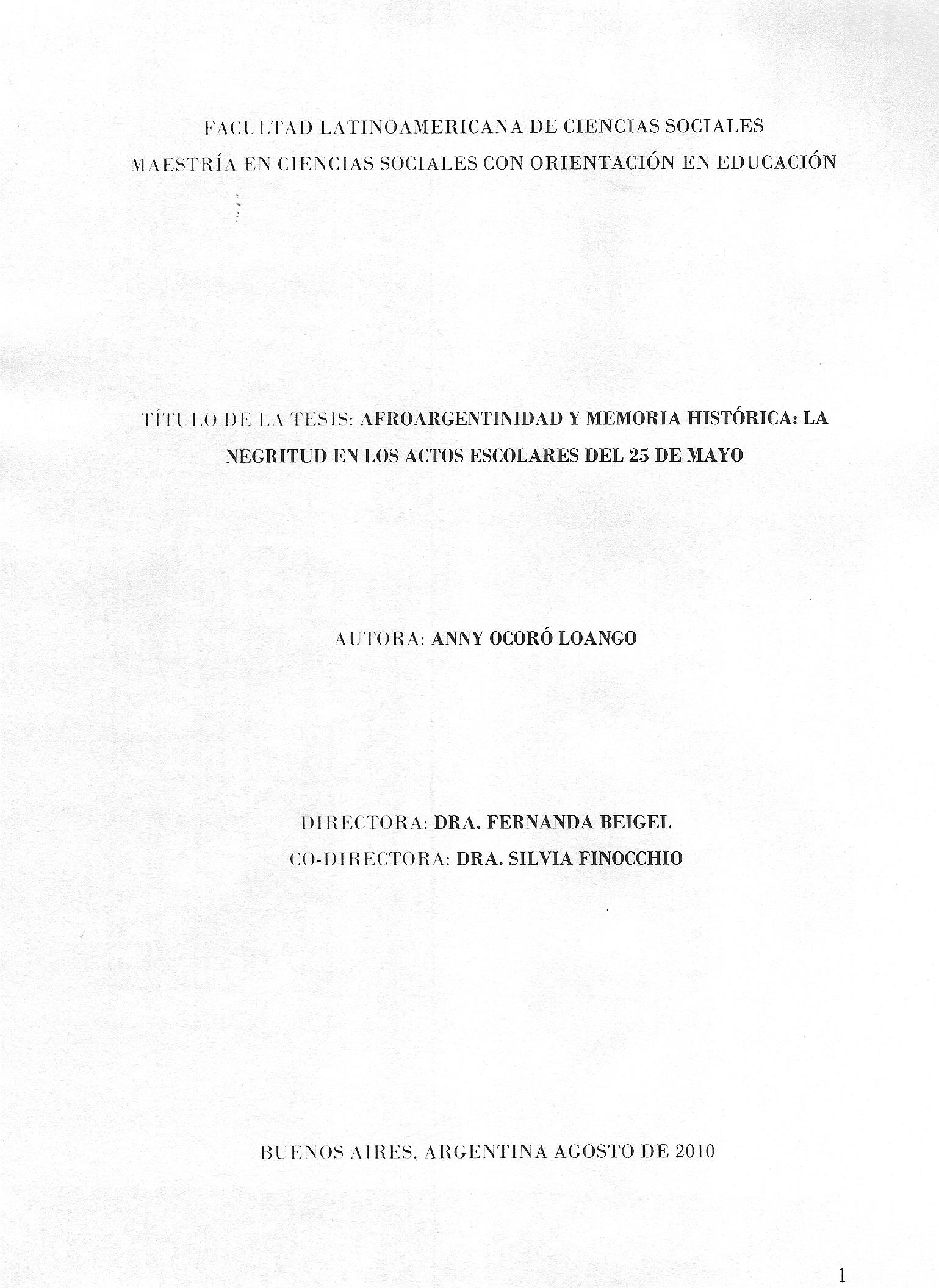 Ocoró Loango, Anny (2010). Afroargentinidad y memoria histórica : la negritud en los actos escolares del 25 de mayo. Tesis de Maestría. FLACSO. Sede Académica Argentina, Buenos Aires.