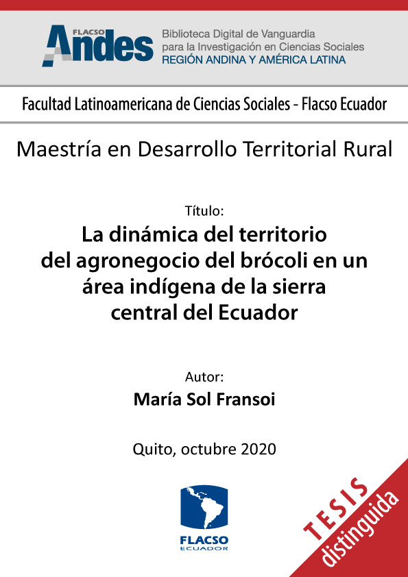 Fransoi, María Sol. 2020. La dinámica del territorio del agronegocio del brócoli en un área indígena de la sierra central del Ecuador. Tesis de maestría, Flacso Ecuador.