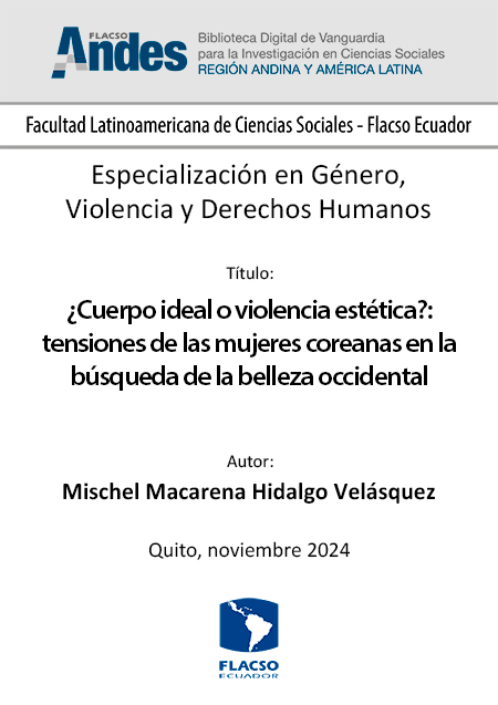 Hidalgo Velásquez, Mischel Macarena. 2024. ¿Cuerpo ideal o violencia estética?: tensiones de las mujeres coreanas en la búsqueda de la belleza occidental. Tesina de especialización, Flacso Ecuador.